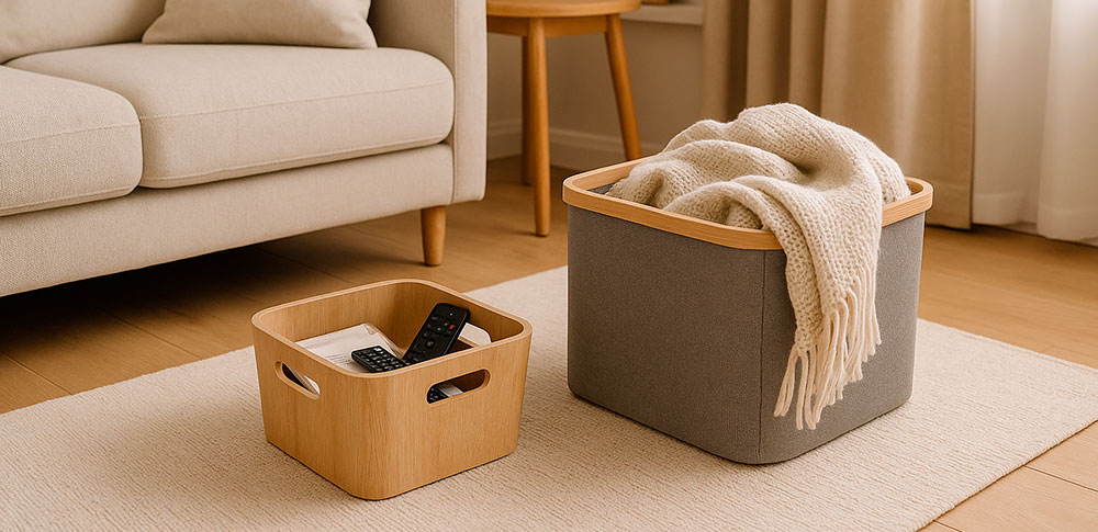 • Organizadores de mando, revistas y pequeños objetos en el salón.