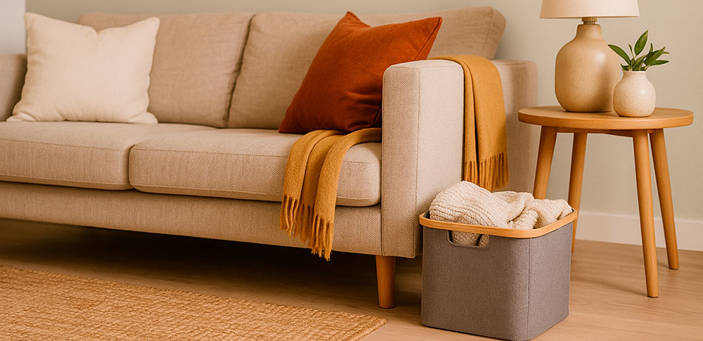 • Añadir una cesta decorativa cerca del sofá para guardar lo que normalmente queda tirado.