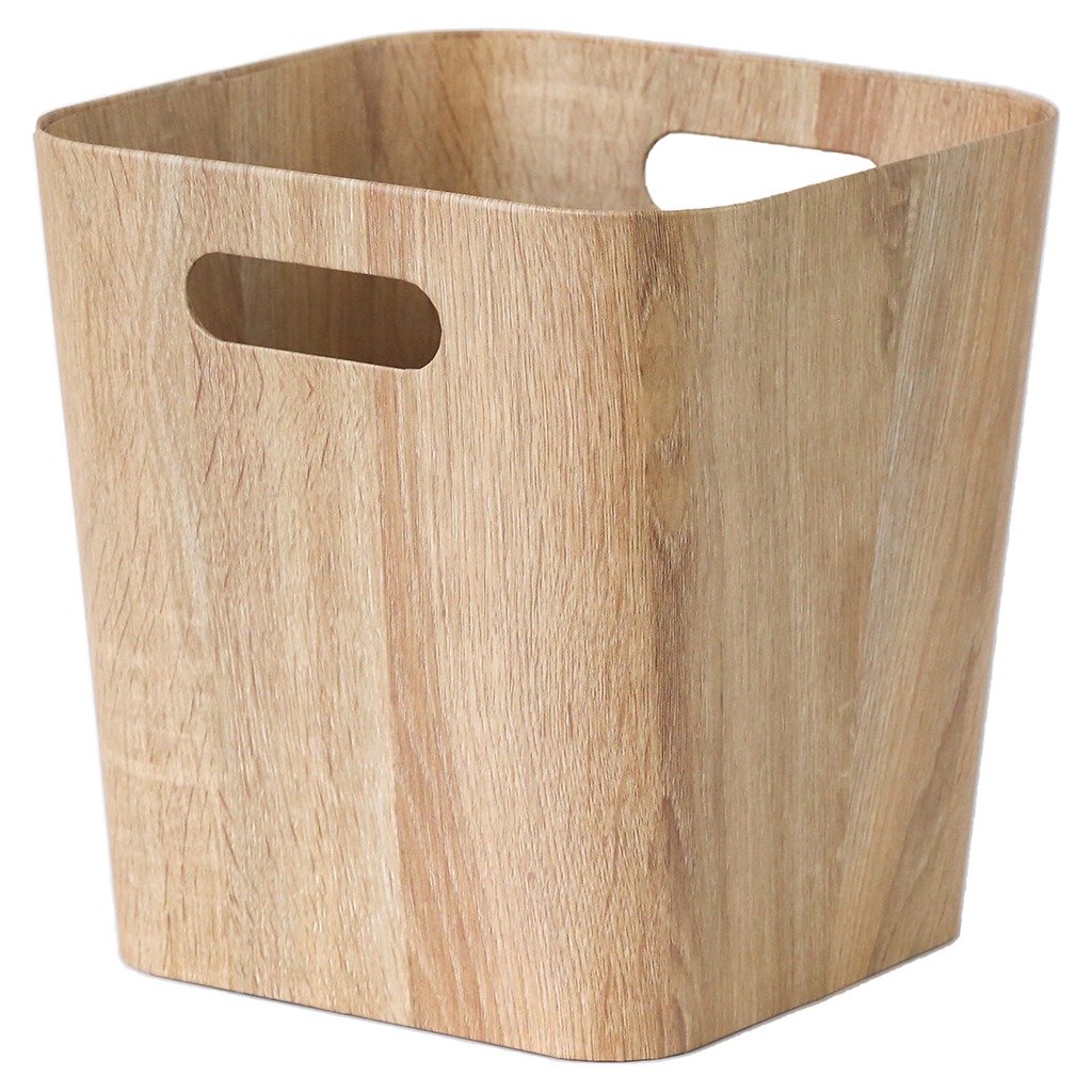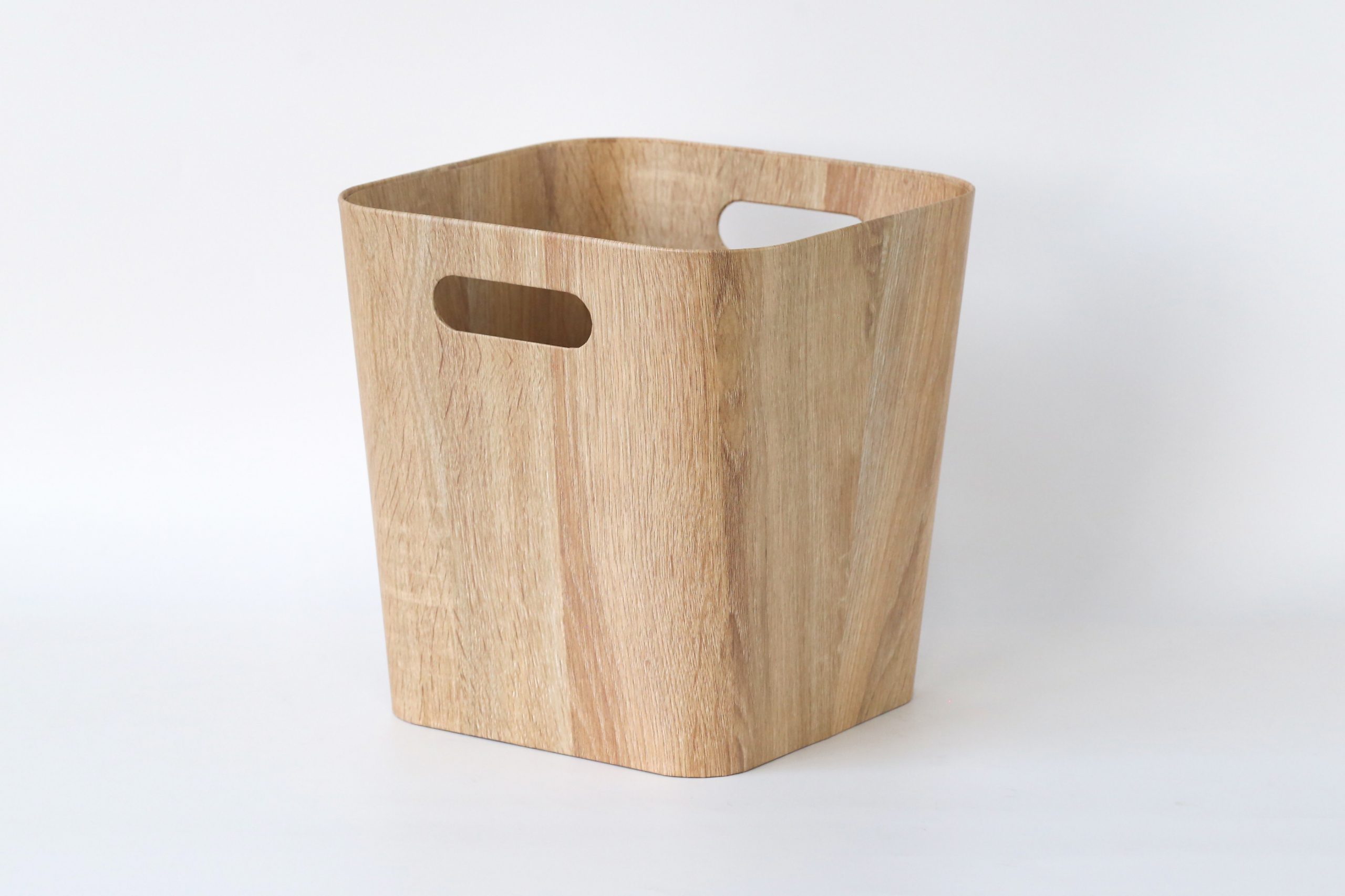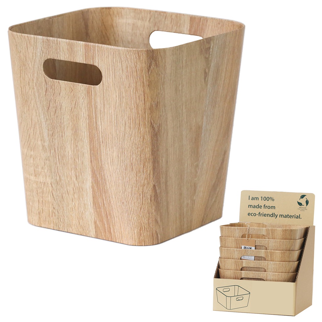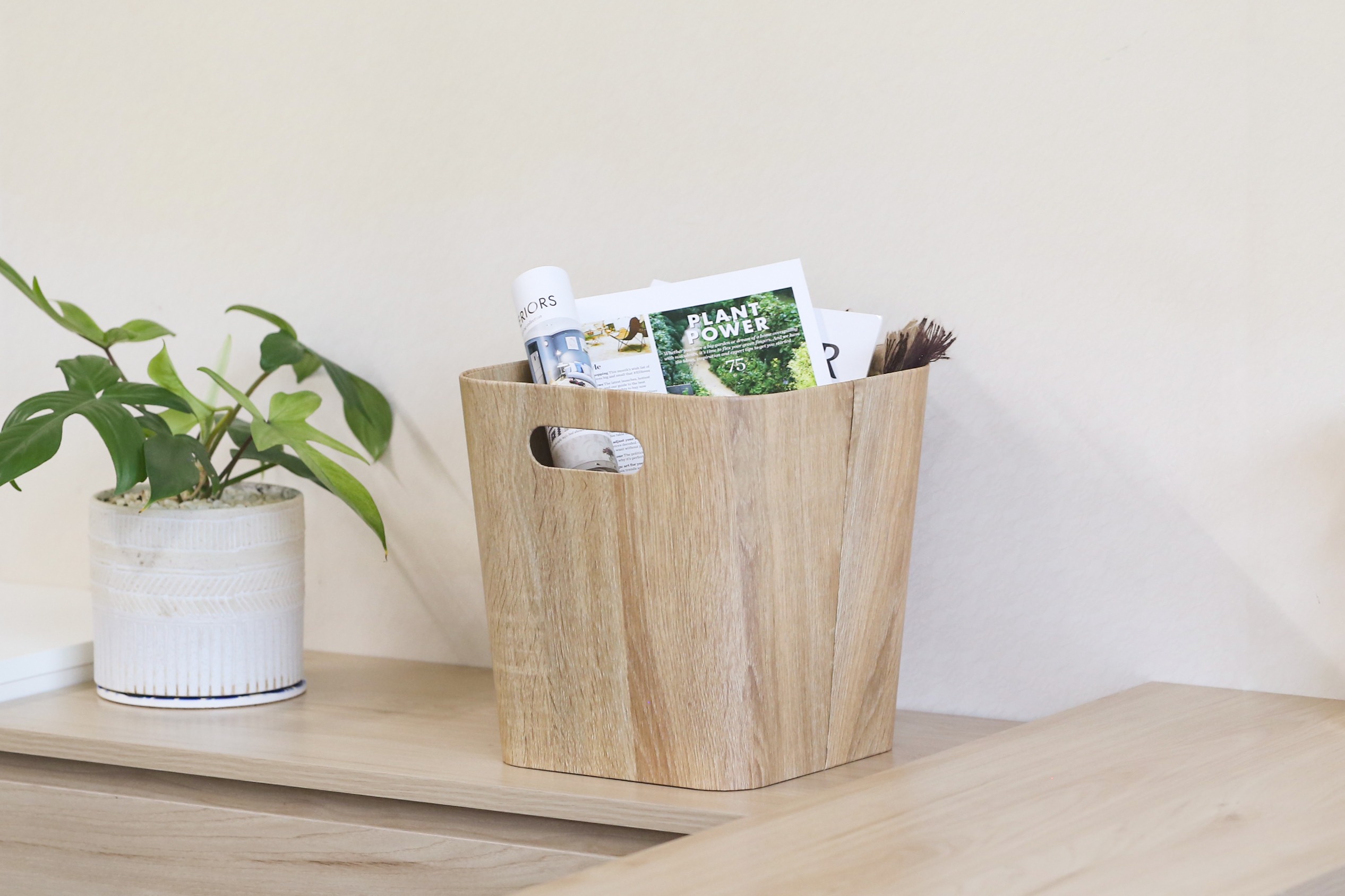 Cestas de almacenamiento con acabado símil madera, fabricadas con papel reciclado de alta calidad. Combinan un diseño cálido y natural con ligereza y resistencia, ofreciendo una solución práctica y sostenible para la organización del hogar. Ideales para ordenar estanterías, armarios o espacios comunes, aportan un toque decorativo y funcional a cualquier ambiente.