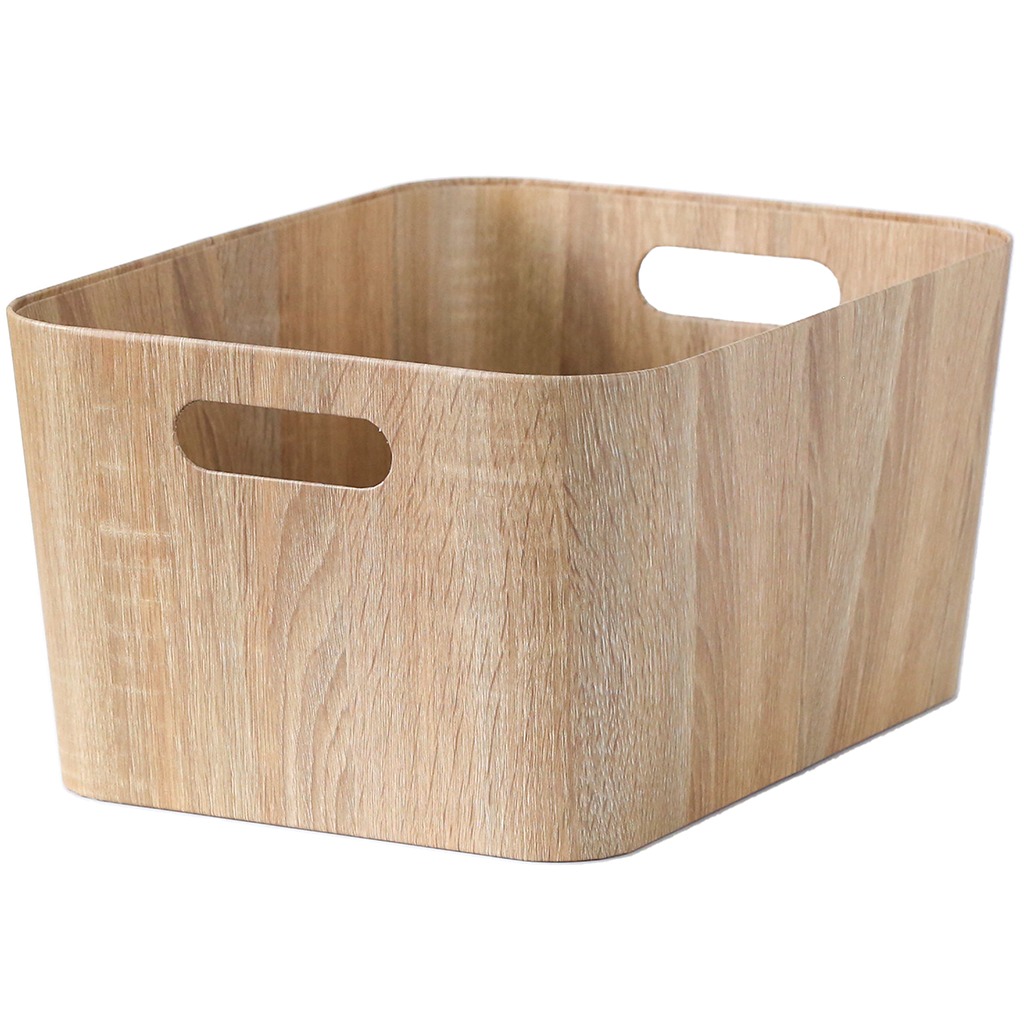 Cesto rectangular con asa símil madera